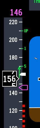 Located on the speed tape on the PFD is a vertical arrow called a Speed Trend Vector (STV). The Speed Trend Vector will display a green-coloured upwards, neutral or downwards facing arrow.